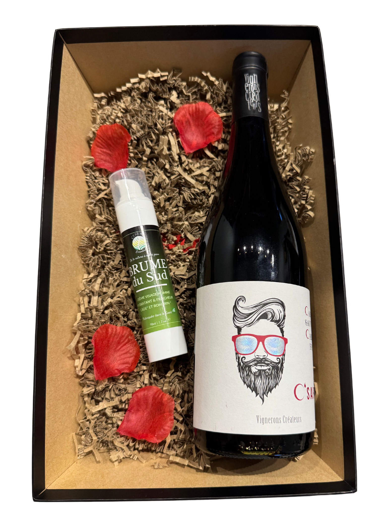 Séduisez votre homme avec ce coffret St Valentin pensé pour les vrais connaisseurs. Découvrez une bouteille de rouge C'sar, un assemblage raffiné de Cabernet Franc et Cabernet Sauvignon aux arômes complexes et généreux. Complétez l'expérience avec une huile à barbe Lavande Romarin, un soin premium qui nourrit et parfume délicatement. Un duo harmonieux alliant plaisir gustatif et rituel de soin, idéal pour une soirée mémorable.