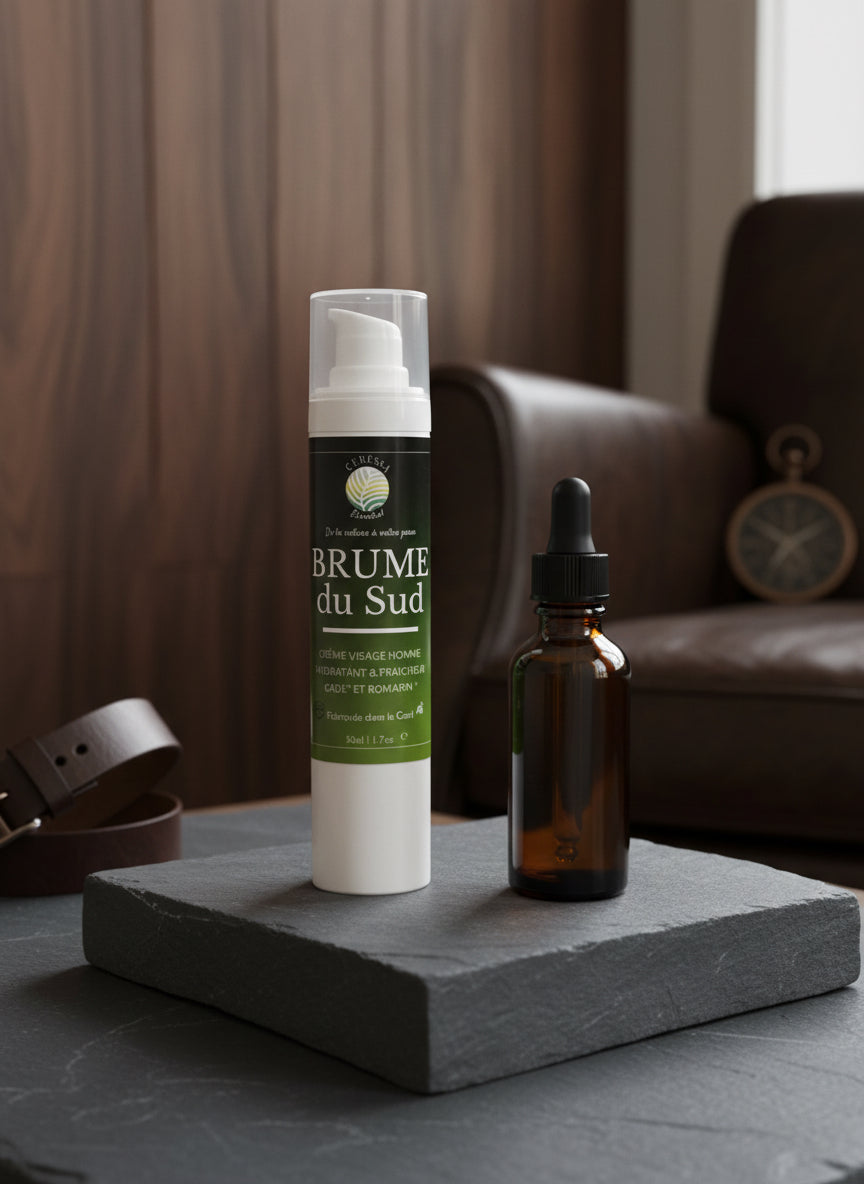 Formulée spécifiquement pour la peau masculine, cette crème visage associe l'huile essentielle de cade et l'huile essentielle de romarin pour une action complète. Le cade purifie et régule le sébum, tandis que le romarin tonifie et revitalise. Texture légère et non-grasse, elle pénètre rapidement pour hydrater sans effet brillant. Idéale pour les peaux grasses à mixtes, elle laisse le teint frais et unifié. Format pratique de 50ml pour une utilisation quotidienne.