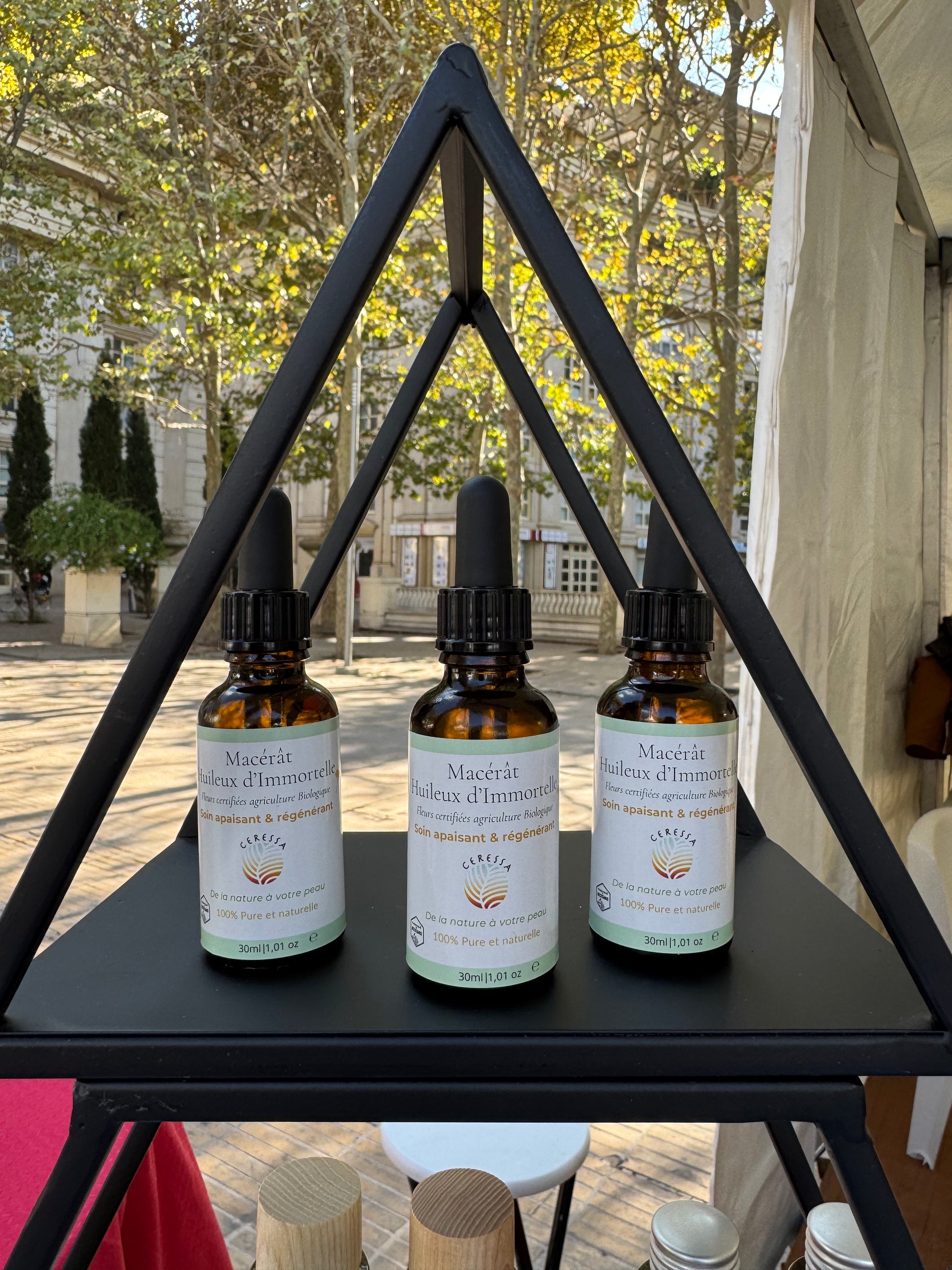 Élaboré à partir de fleurs d’Immortelle biologiques, cultivées à Garons et transformées dans le Gard, ce soin 100% naturel nourrit, régénère et sublime la peau pendant la nuit.